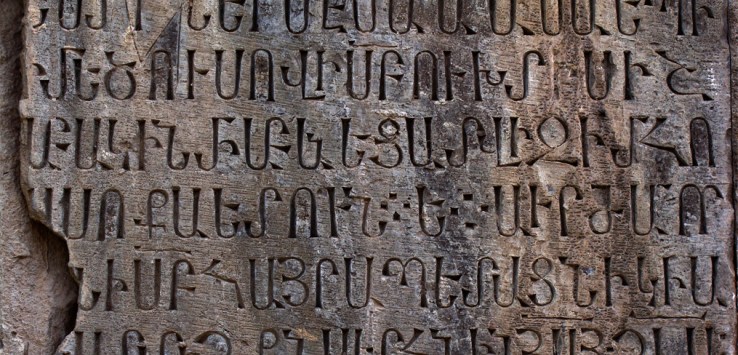 Armenian is the official language in Armenia. The Armenian language belongs to the family of Indo-European languages. It is a separate branch of this family and is one of the ancient written languages. The unique Armenian alphabet was created by Mesrop Mashtots in 405 AD. The Armenian medieval manuscript by St. Mesrop Mashtots has become a solid foundation of the national language and culture. The manuscript heritage of the Armenians numbers over 23 thousand manuscripts, which are stored in the Yerevan Matenadaran - the Institute of Ancient Manuscripts, bearing the name of the inventor of the Armenian letters, Mesrop Mashtots, as well as in book depositories and libraries in Jerusalem, Vienna, Venice, London and other places.